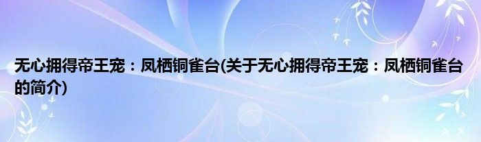 本文关于无心拥得帝王宠:凤栖铜雀台的简介就讲解完毕,希望对大家有所帮助。