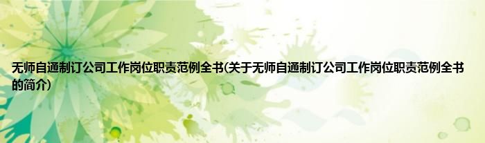 大家好,无师自通制订公司工作岗位职责范例全书,关于无师自通制订公司工作岗位职责范例全书的简介很多人还不知道,现在让我们一起来看看吧!