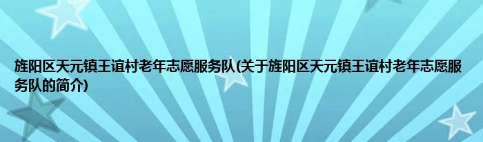 旌阳区天元镇王谊村老年志愿服务队(关于旌阳区天元镇王谊村老年志愿服务队的简介)