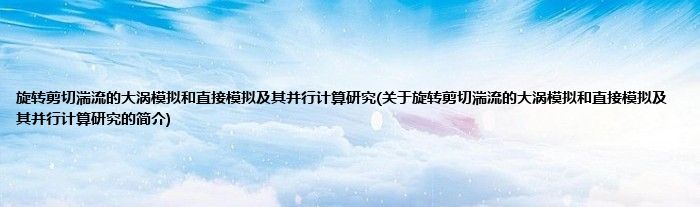 大家好,旋转剪切湍流的大涡模拟和直接模拟及其并行计算研究,关于旋转剪切湍流的大涡模拟和直接模拟及其并行计算研究的简介很多人还不知道,现在让我们一起来看看吧!