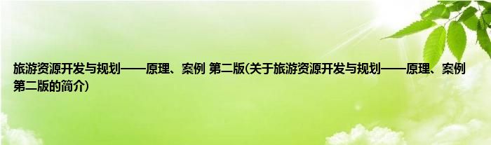 大家好,旅游资源开发与规划——原理、案例 第二版,关于旅游资源开发与规划——原理、案例 第二版的简介很多人还不知道,现在让我们一起来看看吧!