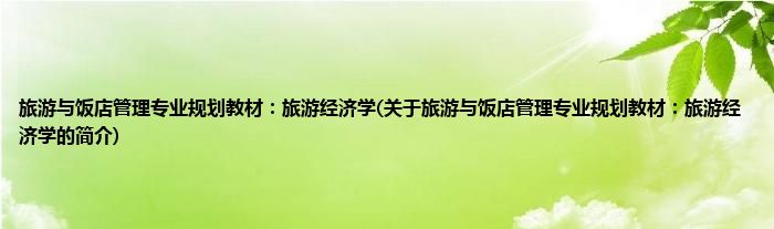 本文关于旅游与饭店管理专业规划教材:旅游经济学的简介就讲解完毕,希望对大家有所帮助。