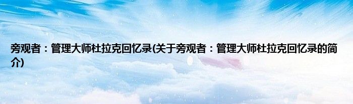 本文关于旁观者:管理大师杜拉克回忆录的简介就讲解完毕,希望对大家有所帮助。