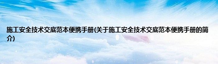 本文关于施工安全技术交底范本便携手册的简介就讲解完毕,希望对大家有所帮助。