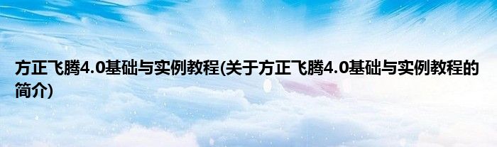 本文关于方正飞腾4.0基础与实例教程的简介就讲解完毕,希望对大家有所帮助。