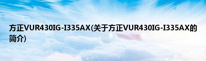 本文关于方正VUR430IG-I335AX的简介就讲解完毕,希望对大家有所帮助。