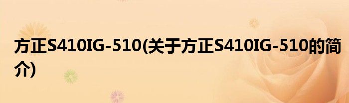 本文关于方正S410IG-510的简介就讲解完毕,希望对大家有所帮助。