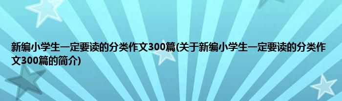 大家好,新编小学生一定要读的分类作文300篇,关于新编小学生一定要读的分类作文300篇的简介很多人还不知道,现在让我们一起来看看吧!
