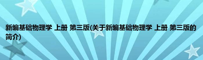 本文关于新编基础物理学 上册 第三版的简介就讲解完毕,希望对大家有所帮助。