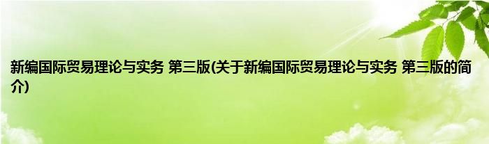 本文关于新编国际贸易理论与实务 第三版的简介就讲解完毕,希望对大家有所帮助。