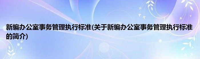 本文关于新编办公室事务管理执行标准的简介就讲解完毕,希望对大家有所帮助。