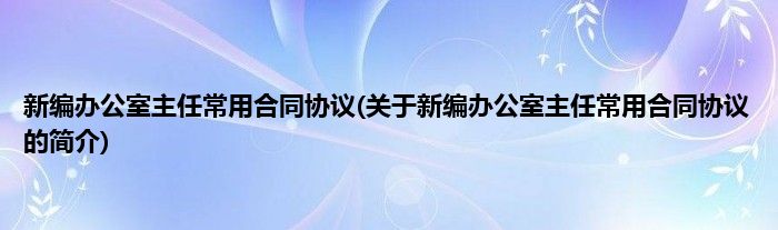 大家好,新编办公室主任常用合同协议,关于新编办公室主任常用合同协议的简介很多人还不知道,现在让我们一起来看看吧!