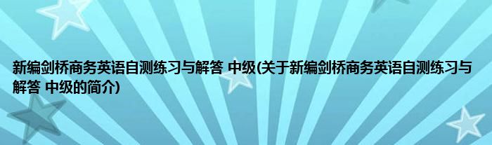 本文关于新编剑桥商务英语自测练习与解答 中级的简介就讲解完毕,希望对大家有所帮助。