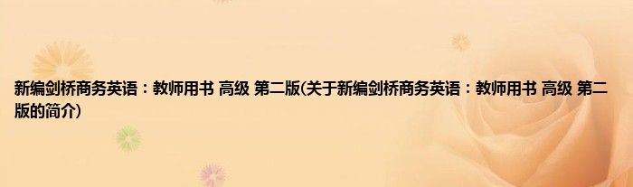 1、 《新编剑桥商务英语教师用书(高级)(第二版)》是2002年经济科学出版社出版的图书。