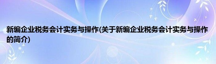 本文关于新编企业税务会计实务与操作的简介就讲解完毕,希望对大家有所帮助。