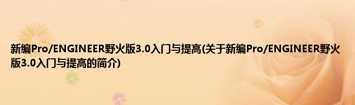 本文关于新编Pro/ENGINEER野火版3.0入门与提高的简介就讲解完毕,希望对大家有所帮助。