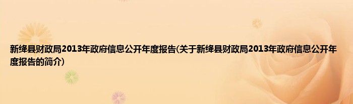 本文关于新绛县财政局2013年政府信息公开年度报告的简介就讲解完毕,希望对大家有所帮助。
