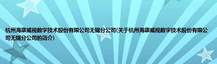 本文关于杭州海康威视数字技术股份有限公司无锡分公司的简介就讲解完毕,希望对大家有所帮助。