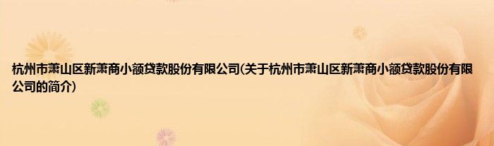 本文关于杭州市萧山区新萧商小额贷款股份有限公司的简介就讲解完毕,希望对大家有所帮助。
