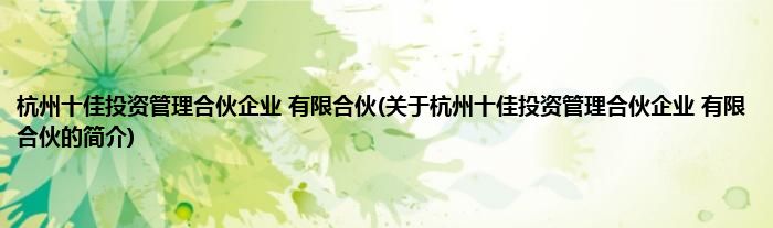 本文关于杭州十佳投资管理合伙企业 有限合伙的简介就讲解完毕,希望对大家有所帮助。
