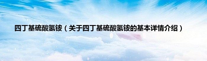 本文关于四丁基硫酸氢铵的基本详情介绍就讲解完毕,希望对大家有所帮助。