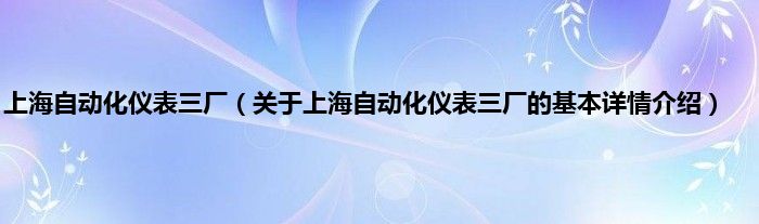 本文关于上海自动化仪表三厂的基本详情介绍就讲解完毕,希望对大家有所帮助。