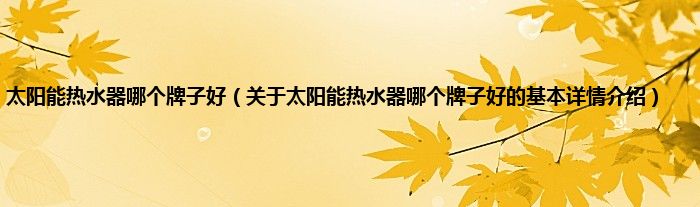 本文关于太阳能热水器哪个牌子好的基本详情介绍就讲解完毕,希望对大家有所帮助。