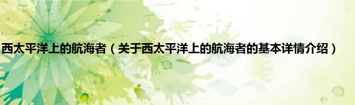 大家好我是小蝌蚪,西太平洋上的航海者,关于西太平洋上的航海者的基本详情介绍很多人还不知道,那么现在让我们一起来看看吧!