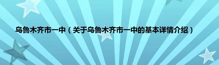 本文关于乌鲁木齐市一中的基本详情介绍就讲解完毕,希望对大家有所帮助。