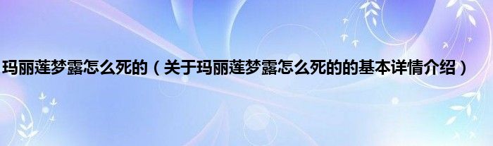 本文关于玛丽莲梦露怎么死的的基本详情介绍就讲解完毕,希望对大家有所帮助。
