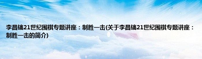 大家好,李昌镐21世纪围棋专题讲座:制胜一击,关于李昌镐21世纪围棋专题讲座:制胜一击的简介很多人还不知道,现在让我们一起来看看吧!