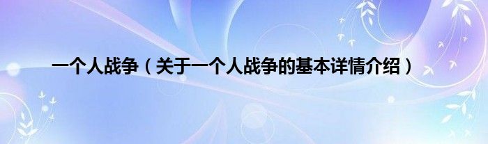 本文关于一个人战争的基本详情介绍就讲解完毕,希望对大家有所帮助。
