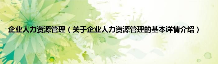 本文关于企业人力资源管理的基本详情介绍就讲解完毕,希望对大家有所帮助。