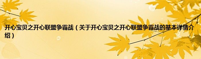 开心宝贝之开心联盟争霸战(关于开心宝贝之开心联盟争霸战的基本详情介绍)