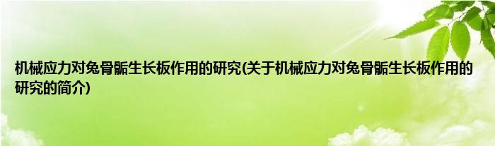 本文关于机械应力对兔骨骺生长板作用的研究的简介就讲解完毕,希望对大家有所帮助。