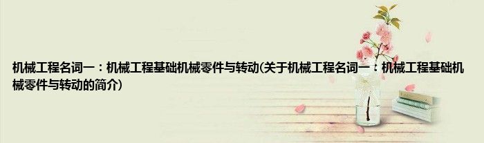 本文关于机械工程名词一:机械工程基础机械零件与转动的简介就讲解完毕,希望对大家有所帮助。