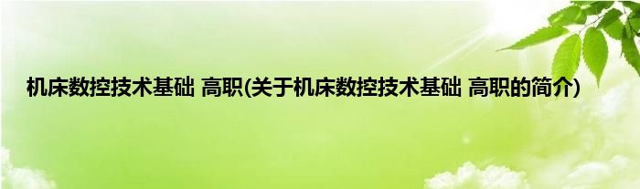本文关于机床数控技术基础 高职的简介就讲解完毕,希望对大家有所帮助。