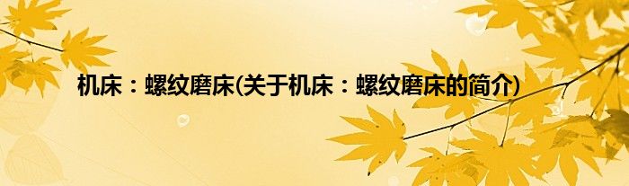 本文关于机床:螺纹磨床的简介就讲解完毕,希望对大家有所帮助。