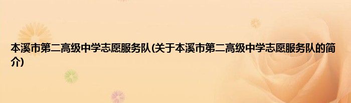 大家好,本溪市第二高级中学志愿服务队,关于本溪市第二高级中学志愿服务队的简介很多人还不知道,现在让我们一起来看看吧!