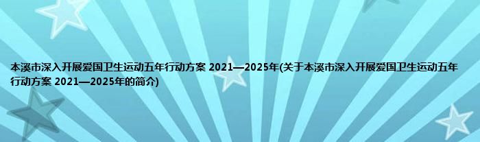本文关于本溪市深入开展爱国卫生运动五年行动方案 2021—2025年的简介就讲解完毕,希望对大家有所帮助。