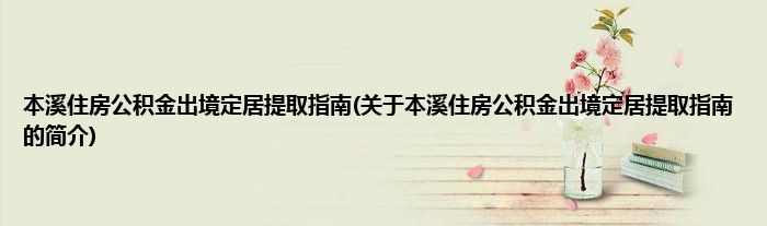 大家好,本溪住房公积金出境定居提取指南,关于本溪住房公积金出境定居提取指南的简介很多人还不知道,现在让我们一起来看看吧!