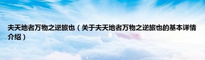 大家好我是小蝌蚪,夫天地者万物之逆旅也,关于夫天地者万物之逆旅也的基本详情介绍很多人还不知道,那么现在让我们一起来看看吧!