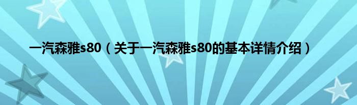 本文关于一汽森雅s80的基本详情介绍就讲解完毕,希望对大家有所帮助。