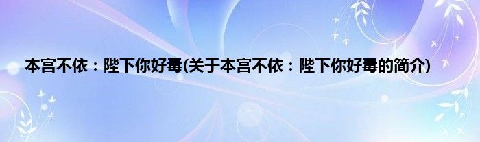 大家好,本宫不依:陛下你好毒,关于本宫不依:陛下你好毒的简介很多人还不知道,现在让我们一起来看看吧!