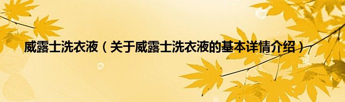 本文关于威露士洗衣液的基本详情介绍就讲解完毕,希望对大家有所帮助。