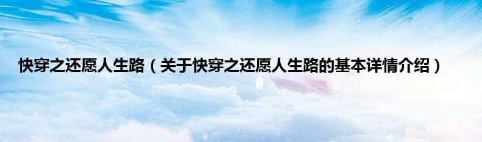 本文关于快穿之还愿人生路的基本详情介绍就讲解完毕,希望对大家有所帮助。
