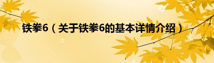 本文关于铁拳6的基本详情介绍就讲解完毕,希望对大家有所帮助。