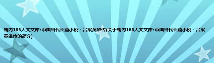 大家好,朝内166人文文库·中国当代长篇小说:吕梁英雄传,关于朝内166人文文库·中国当代长篇小说:吕梁英雄传的简介很多人还不知道,现在让我们一起来看看吧!