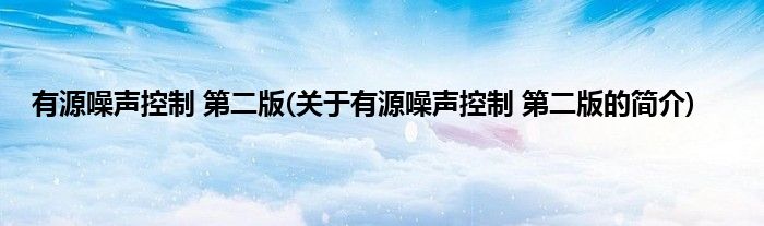 大家好,有源噪声控制 第二版,关于有源噪声控制 第二版的简介很多人还不知道,现在让我们一起来看看吧!