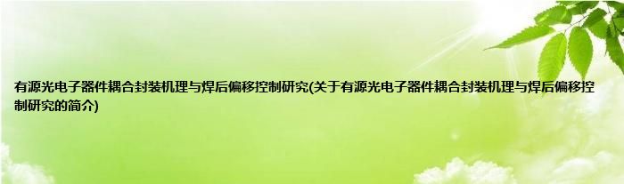 本文关于有源光电子器件耦合封装机理与焊后偏移控制研究的简介就讲解完毕,希望对大家有所帮助。